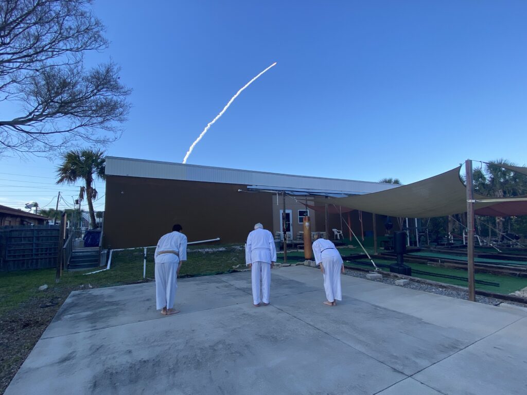 Over 25 Ueshiro Shorin-Ryu karate students representing schools spread throughout the country descended on our humble dojo in Merritt Island on Friday, February 2, 2024 for Kyoshi Reymond’s 6:00am class.